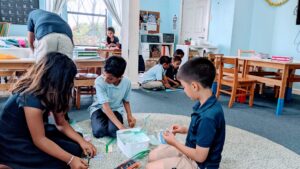 When they started setting up, all us teachers were hands off. They carried tables, chairs, oriented who was going to go where. My goal is to completely empower them to do every single detail. If there are problems, they discuss it, negotiate it, and figure out the solution. It’s so important that we adults not step in – but allow their thinking minds to work together.
