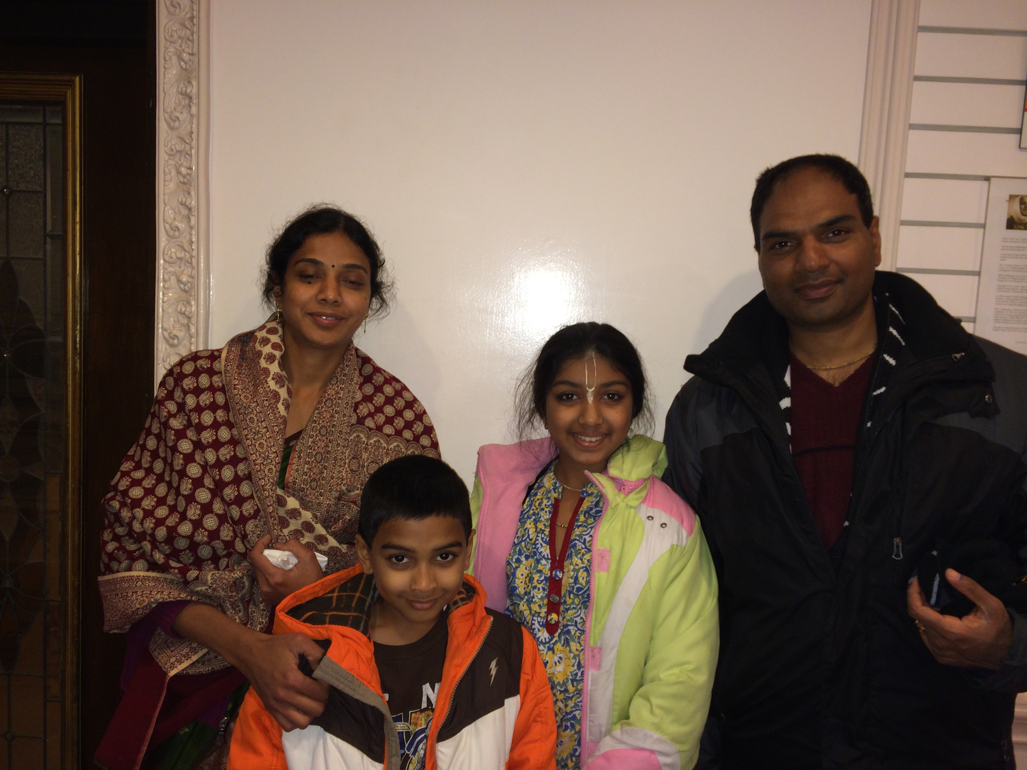 Today is Sunday. The roads are icy. The temperatures are below freezing, with hailstorms and scattered windstorms. There are only a handful of local devotees attending the evening Sunday bhajans. However, surprisingly, a dedicated family has come all the way from Frisco. It took them an hour and a half from their home.