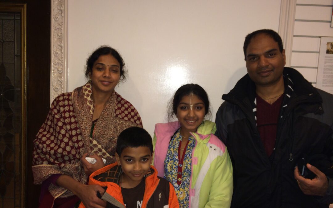 Sriman Renuprasad and Srimati Ragini Bonthala travel each week from a long distance to worship Sri Sri Radha Kalachandji. Their dedication to see the Lord and serve His devotees is something to aspire for.