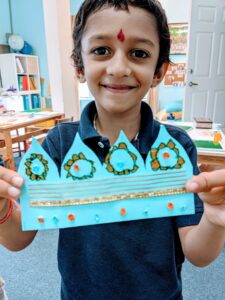 This year the youngest students crafted the flags and made sequined paper ‘temples’. Here are some pictures!