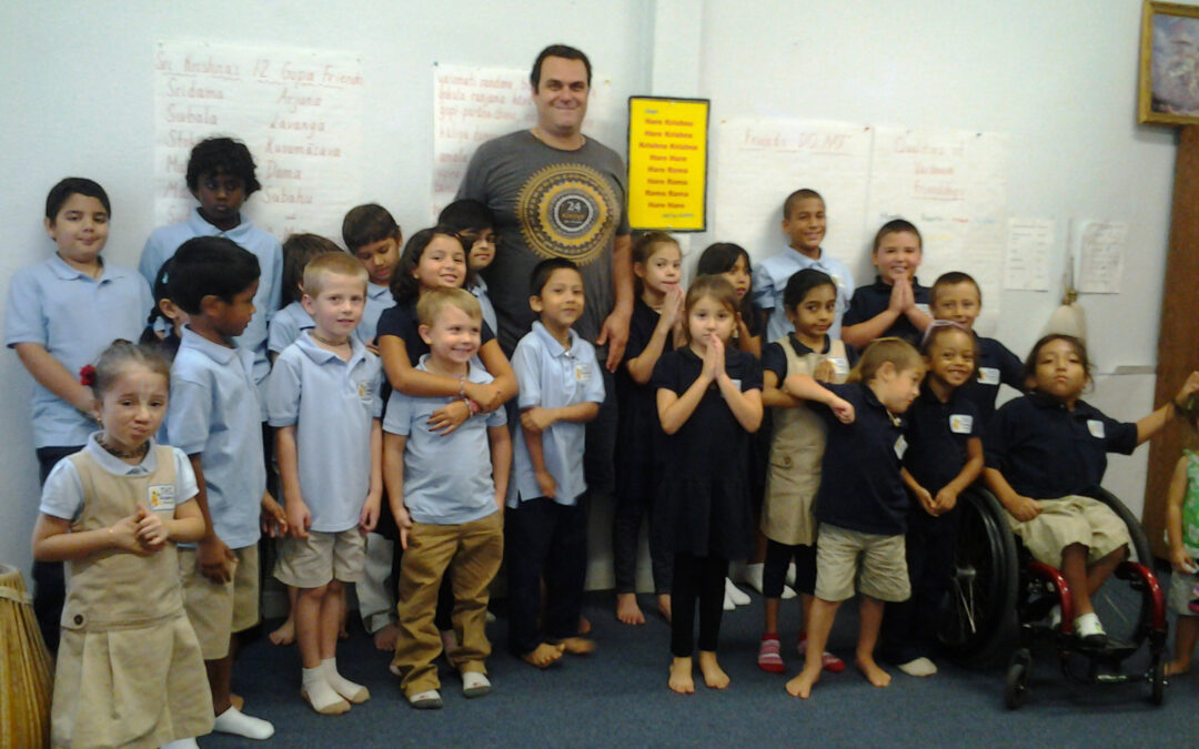 World renowned kirtan leader, His Grace Gaura Vani Prabhu visited TKG Academy in the first week of school.