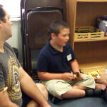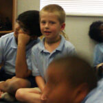 He started a kirtan and pointed to individual students, encouraging them to take turns leading. Then he answered questions. When one student asked, “Where have you traveled in the world?” Gauravani began naming countries. On and on, so many countries! The kids laughed and laughed.