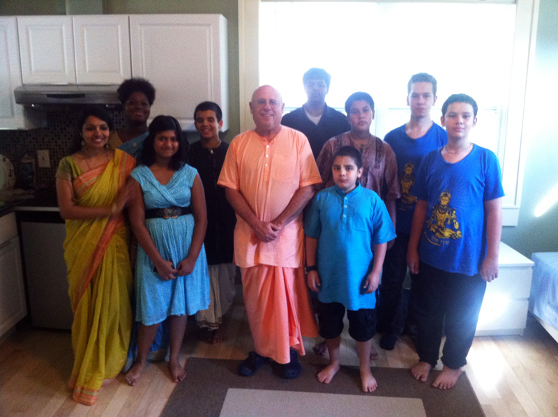 On Monday, June 25th, 2012, TKG Academy teachers and students were honored to welcome His Holiness Hridayananda Maharaj to the Gurukula. He is senior spiritual leader and disciple of Srila Prabhupada, and one of the first leaders to promote the importance of a strong academic education in ISKCON. He is extremely intelligent and so loving as well. Teachers were looking forward to his visit for many months.