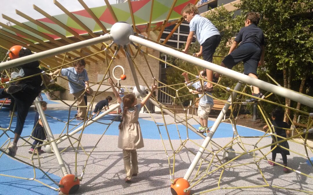 Our adventure began with the “Imagination Playground”, a creative activity at the Klyde Warren Park. Students selected various sizes and shapes of big blue foam blocks to build sculptures of their imagination. After a brief snack break, we headed to the actual playground area near-by and enjoyed climbing up the bars and spinning on the merry-go-round. For the last hour we joined the “Music & Stories” program. We listened to – and sang along – several stories, all about colors. We danced and sang with egg shakers and sticks and made colorful scarves into soaring kites. A multi-colored parachute was but one of the highlights of the day and the cherries on the cake were big bubble wands! What an amazing day at the park!