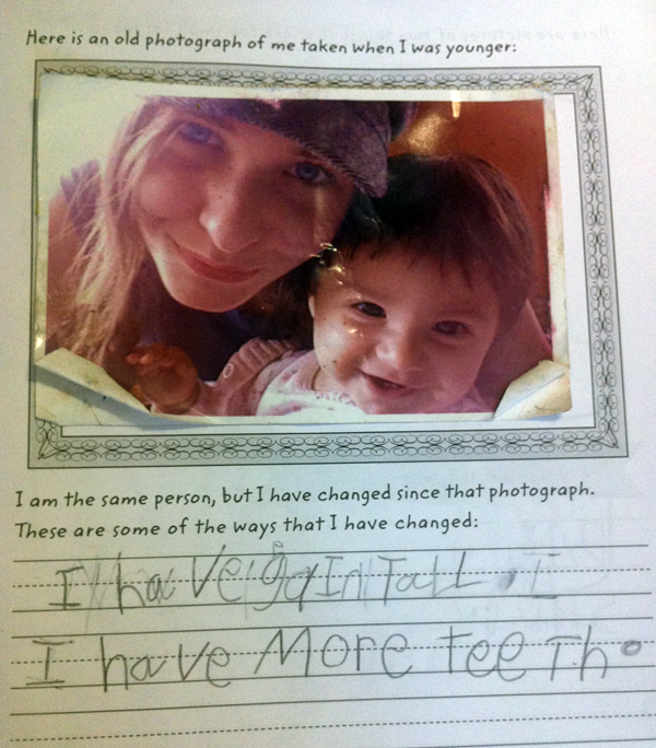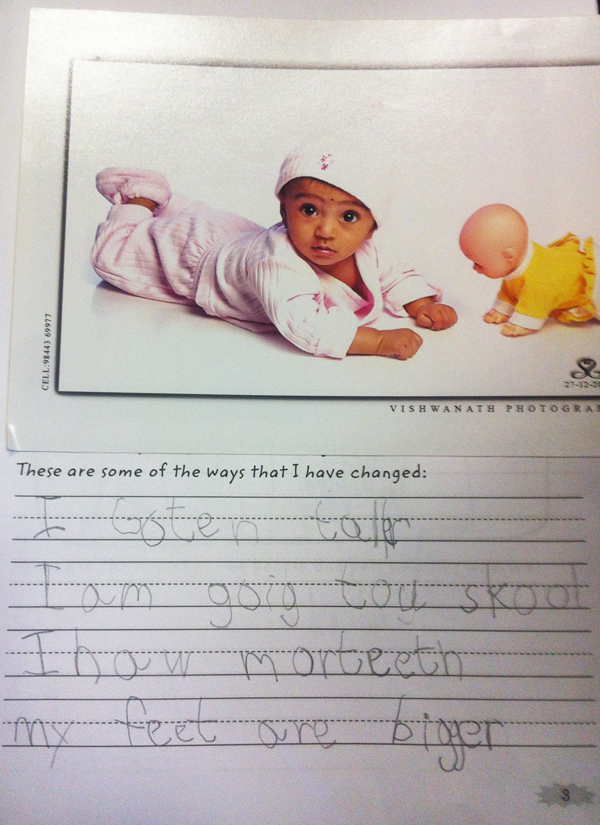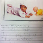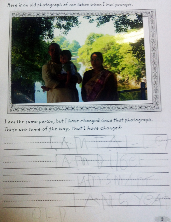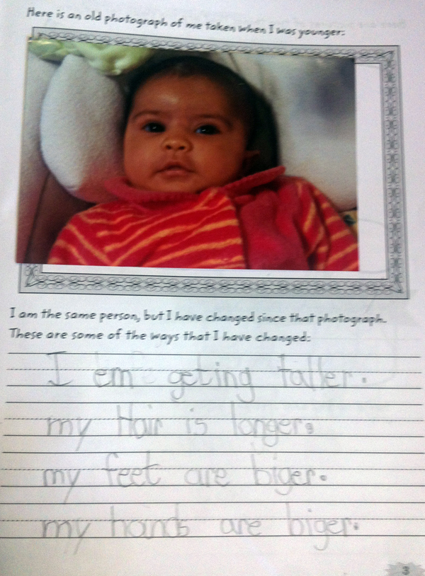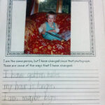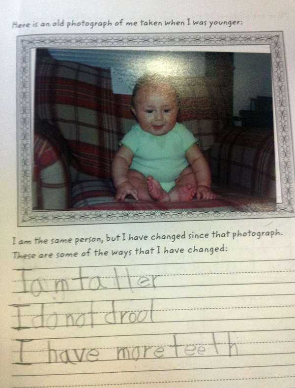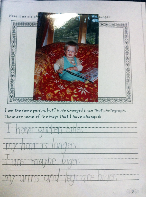 For the 1st graders, we are seeing what everyone remembers as we complete our first lessons of the new year. There is definite improvement in reading and handwriting skills. Thank you parents for working with them over the summer. Write About Me is the 1st grade creative writing book. Students wrote all about themselves, their families, where they live, their likes and dislikes. Here are some samples of their work!