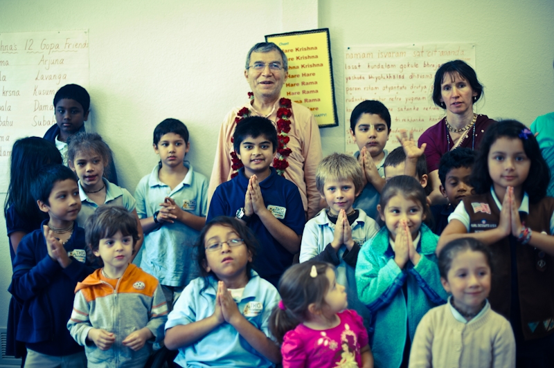 His Holiness Bhakti Sundar Goswami visits with the students! His patient and loving demeanor captivates teachers and students.