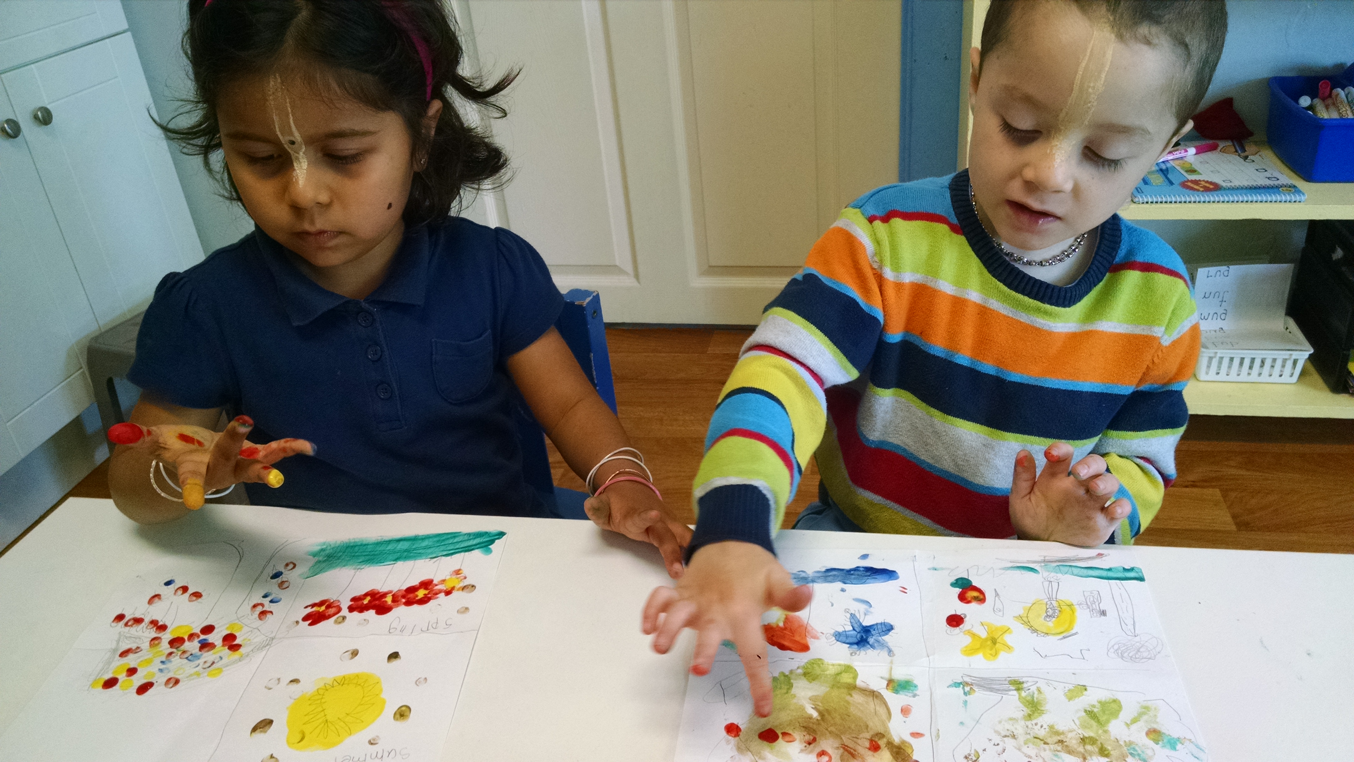 Indeed, after weeks of overcast and inclement weather, the sun has peered from behind the clouds, bringing all vegetation back to life! Spring is here and we are celebrating its arrival. After a week-long break, the preschool class learned about the four seasons and sketched a finger-painted exhibition of their characteristics.