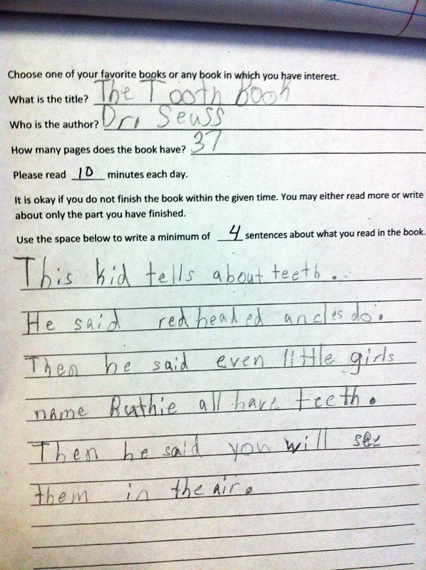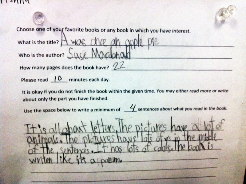 I’m proud of my 2nd graders. A question posed to them of how they feel about the reading and writing journal assignment brought the following replies. “I like it!” “It is helping me to be a better reader and speller.” “It is good for our minds.” “We are learning to read better.” All of them have now begun to write more than the required 6 sentences about their daily readings. And without my suggestion too!