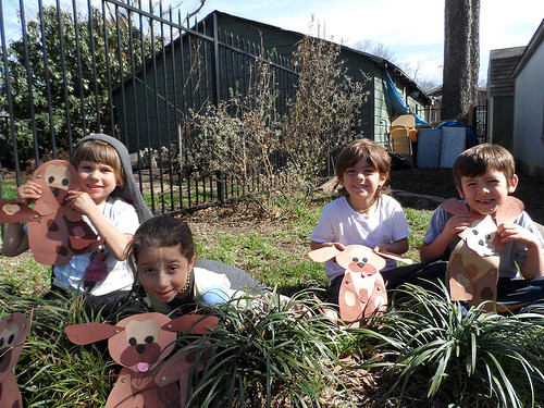 We made them for art class and listened to a devotional story to go along. They have movable floppy ears and front paws. Their spots are all different, just as each child and indeed every living entity is unique. This was a great project for helping young children further develop their fine motor skills and having fun at the same time. We even did some counting and talked about the specific names of other baby animals: deer-fawn, cow-calf, sheep-lamb . . .
