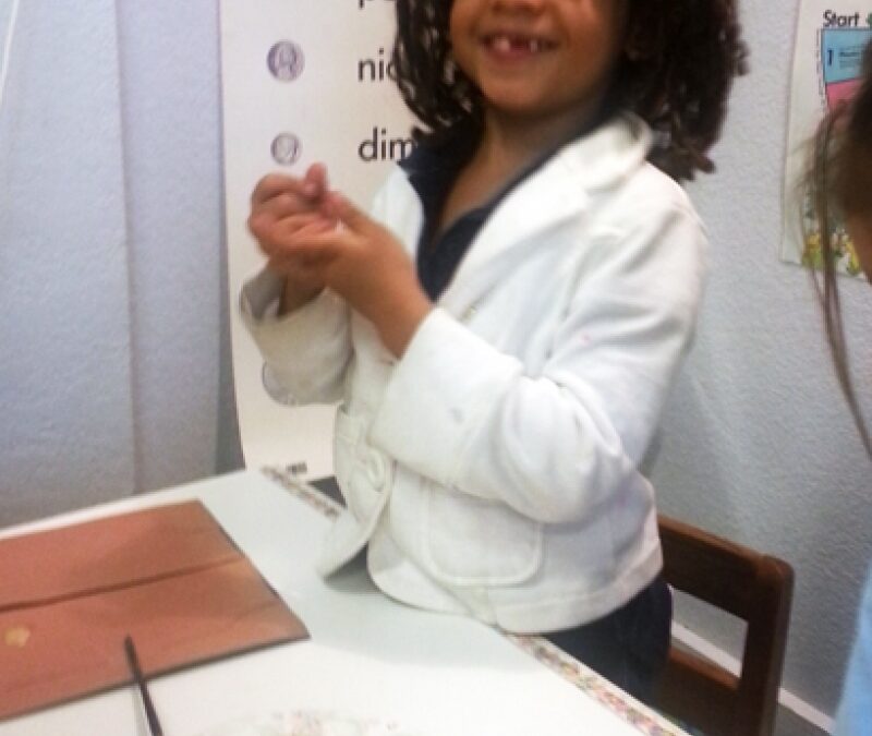 I’m always amazed by Mother Savitri’s Classroom Management skills. She has 10 little energetic students in her class – ages 4 to 6, yet they seem to always be busy and quietly working on their work. I rarely hear discord or craziness coming from her classroom! So I decided to stop by and see what it is that the students are doing.
