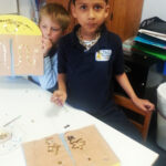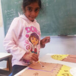It was in the afternoon, and all the students had their art supplies, sequins, paintbrush, water cups, scissors and more. They were absorbed, happily creating little temples for the picture Deities that were to go inside. They had designed their own temples, and were peacefully placing the decoration pieces on the construction paper. Learning how much glue to use, where to place the sequins, how big to cut the doors.. all of these skills are important for hand-eye coordination and even just for learning how to do projects as they reach upper levels.