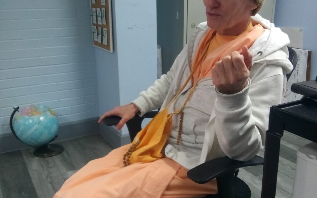 We are fortunate to have spiritual guides who are readily available and eager to hear our queries. We are fortunate to hear their wise and realized replies. More specifically, we are so fortunate that H.H. Rtadhvaja Swami came to visit with us and addressed our doubts, clearing our confusion. His friendly demeanor and jolly mood put us at ease and encourages us along the path.