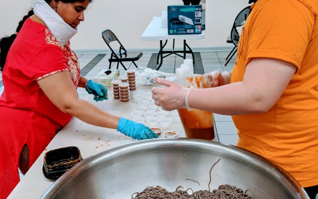 A few of our Middle and High school students journeyed to Kalachandji’s Food for Life set up where they helped cut veggies, label containers and pack more than 800 containers of food going out to first responders at Parkland, and homeless shelters around the area.