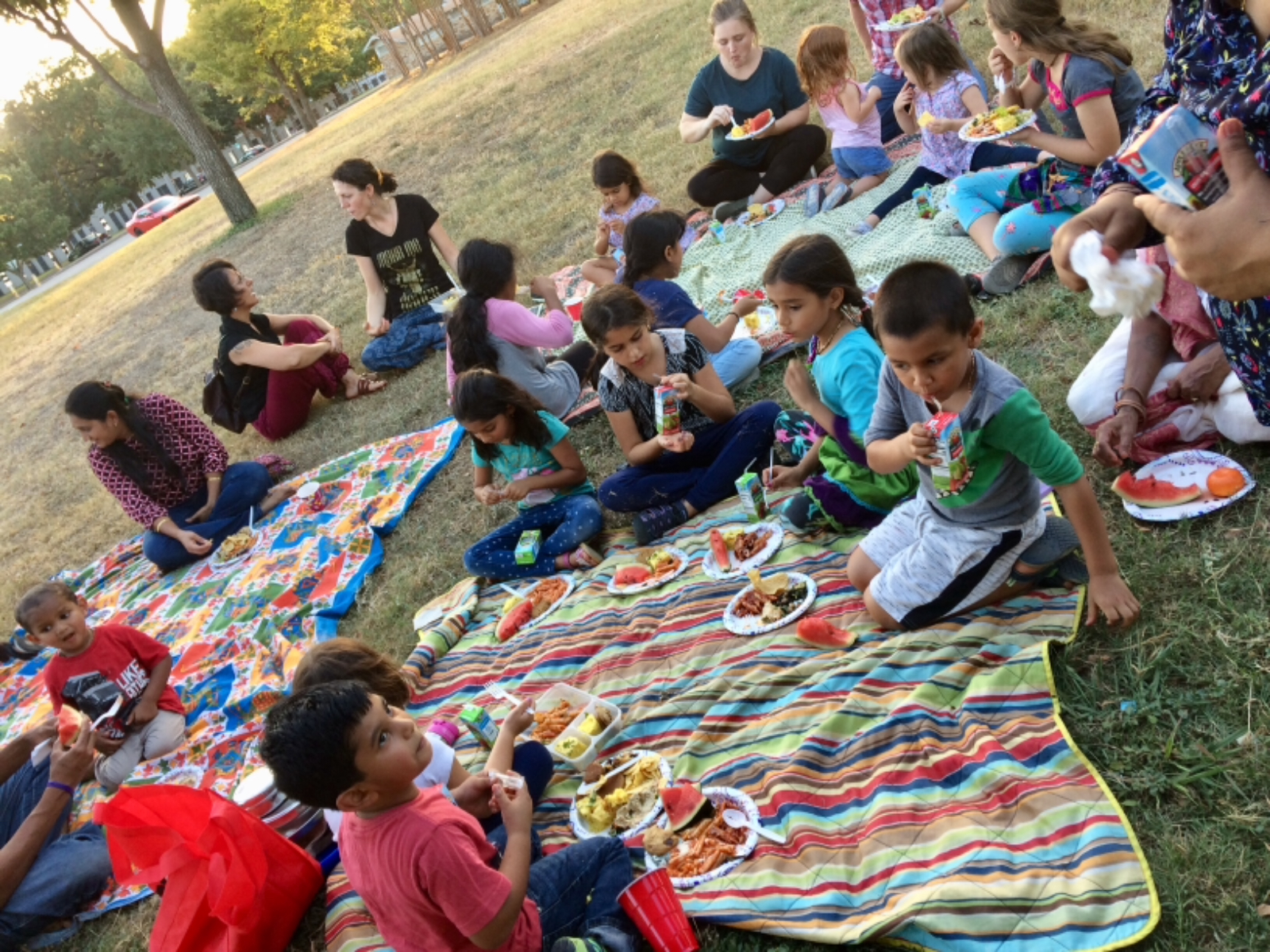 When you live in a city like Dallas, TX, you eagerly seek opportunities to get out and be in nature. Of course, we are so fortunate to have our community of devotees here near the temple and the school. But getting everyone together in a less formal setting doesn’t happen often enough. With the desire to welcome our new families and increase the familial, friendly relationships among our school families, we got together last Friday.