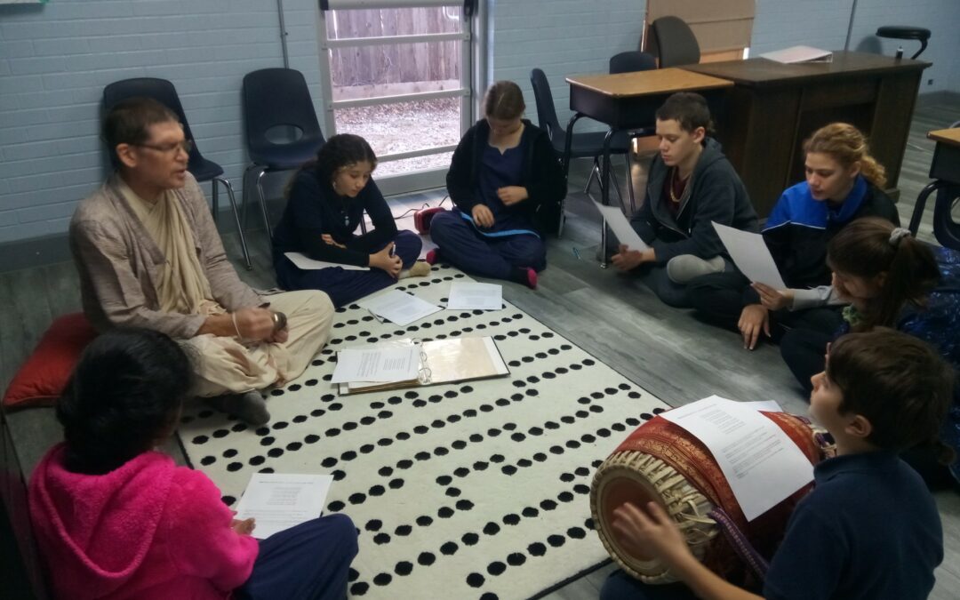 In our study of the Vaishnava Acharyas, we recently analyzed the songs of Srila Narottama Dasa Thakura and invited one of our temple priests, Maha Hari Prabhu, to chant along with us. He explained that there are different ways to pray, and we may get inspiration from reciting the prayerful poems written by our previous Acharyas, or saintly teachers.