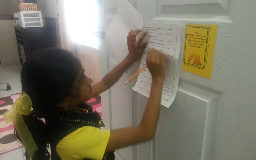 Yes, there were FOURTEEN different types of landforms that were studied, with a Landform Scavenger Hunt and an illustration book on all the Landforms. Yellow Cards were placed all around the building, hidden behind doors and taped onto counters. Students raced to find them, looking for answers to questions on the Landform sheets.