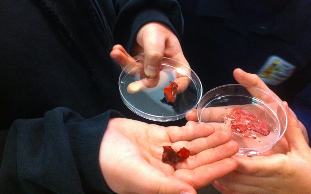 4th graders demonstrate the forming of these three kinds of rock by pressing, melting, and cooling crayon shaving.