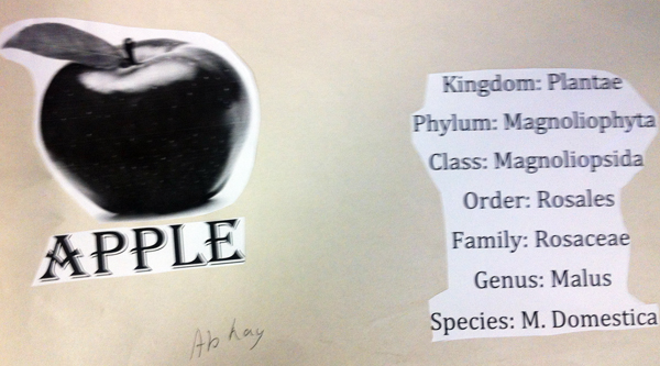 Students get to choose an animal or a fruit or vegetable and classify. They can draw it or print pictures of it to make their display. They research online which category it fits into.